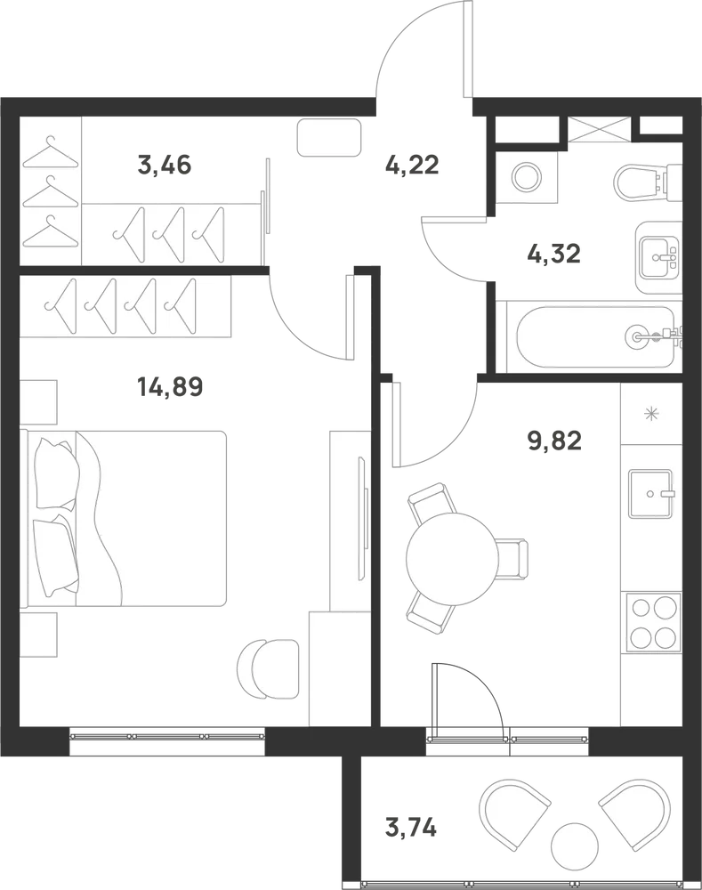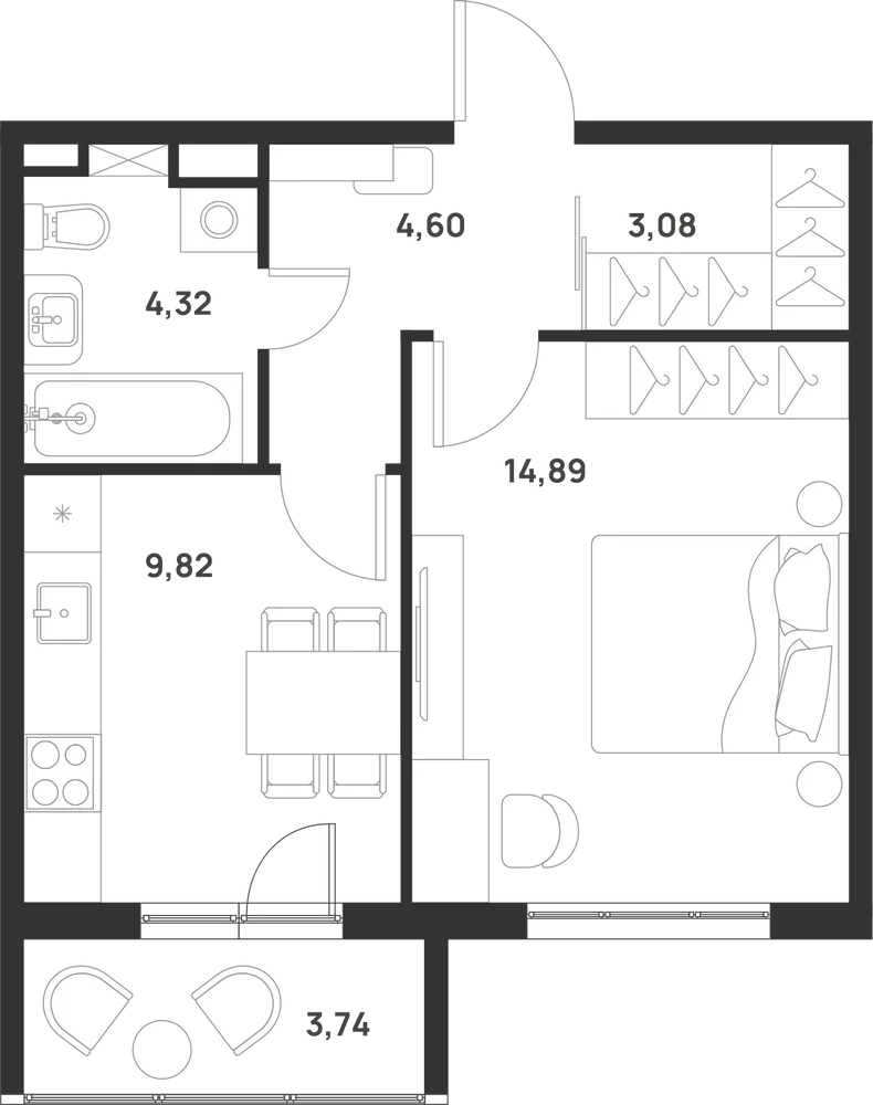 1-комнатная  38.2 м2