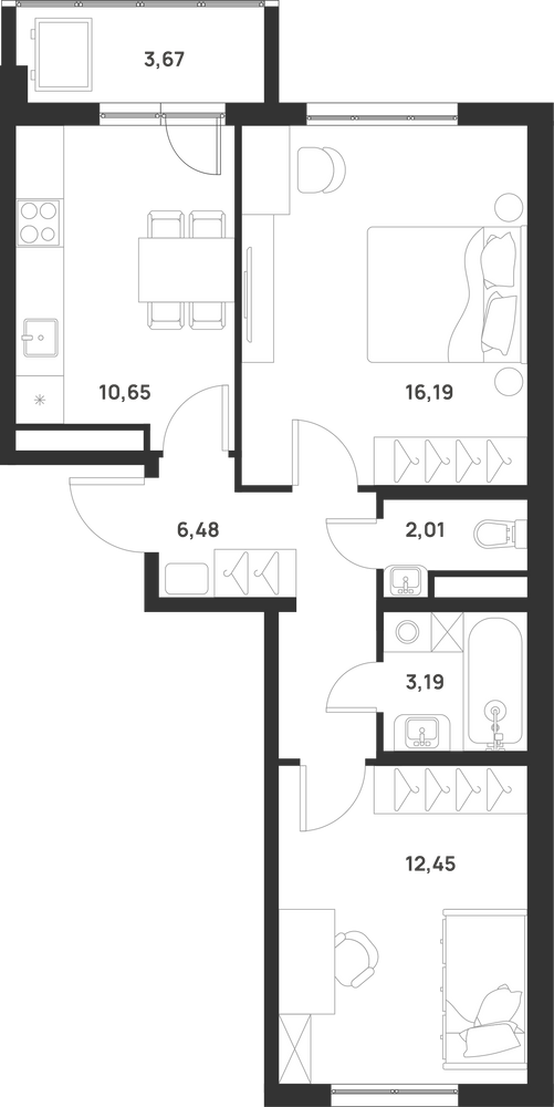 2-комнатная  52.81 м2